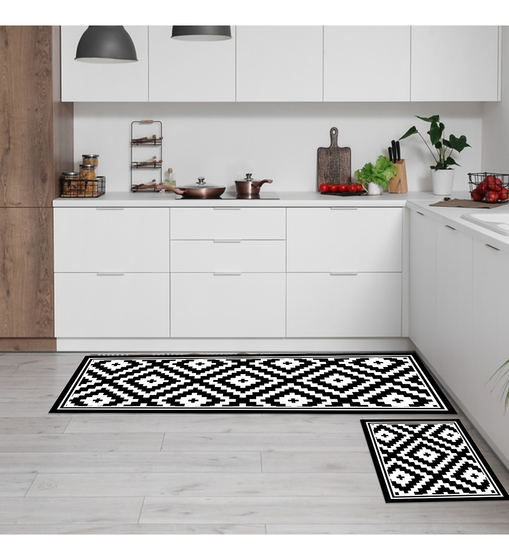 Set 2 Alfombras De Cocina Rombos Black