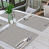 El set Gris Studio Cobre redefine el estándar de la mesa moderna. Su diseño presenta una trama visual de hilo cerrado que imita la nobleza del lino Canvas, aportando una estética minimalista que disimula eficazmente el uso diario. Lo que realmente lo hace único es su tecnología integrada de nanopartículas de cobre, que crea una barrera protectora permanente contra bacterias y hongos. Es la pieza ideal para quienes buscan un comedor sofisticado, libre de olores y fácil de mantener: un diseño de alto desempeño que se limpia en segundos con un paño húmedoTecnología Novo Tela & Cobre