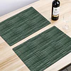 El set Prisma Foresta es una obra de arte lineal para tu mesa. Su diseño rectangular propone un juego visual fascinante, donde una intrincada trama en zigzag descompone tonos verde bosque y hilos de luz, creando un efecto de profundidad y movimiento que cautiva a primera vista. Con una impresión de alta fidelidad, logramos capturar la calidez de un textil complejo sobre la versatilidad de la Novo Tela:Tecnología Novo Tela & Cobre