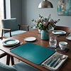 El set Petróleo Geometric es la pieza clave para quienes buscan un comedor con carácter. Su diseño destaca por una trama geométrica de alta definición que no solo aporta un look tecnológico y moderno, sino que funciona estratégicamente para disimular las huellas y marcas del uso diario. Fabricado con nuestra tecnología de cobre antimicrobiano, ofrece una superficie impermeable de limpieza inmediata. Tecnología Novo Tela & Cobre