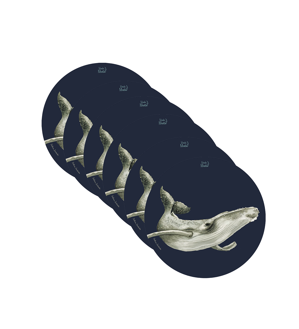 .SET 6 INDIVIDUALES BALLENA JOROBADA - REDONDO 37 X 37 CM