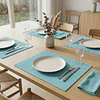 Este conjunto de 4 individuales rectangulares destaca por su estética minimalista y su sofisticada textura de trama fina en un vibrante tono Calipso, diseñada para aportar vitalidad y distinción a tu comedor. Una edición limitada con matices de color únicos que celebra el diseño de autor con propósito.
