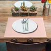 Este conjunto de 6 individuales rectangulares destaca por su sofisticado acabado gofrado en relieve sobre un delicado tono rosa pastelTecnología Novo Tela & Cobre