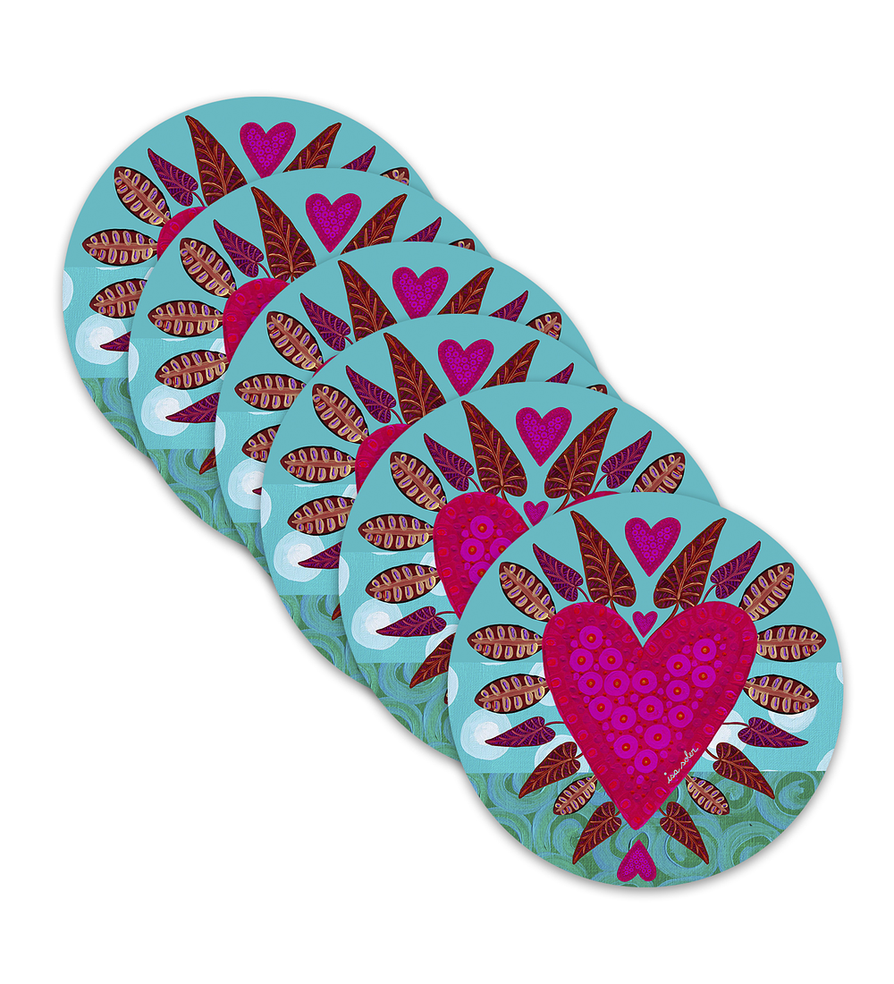 Set 6 Individuales Redondo Corazón Turquesa