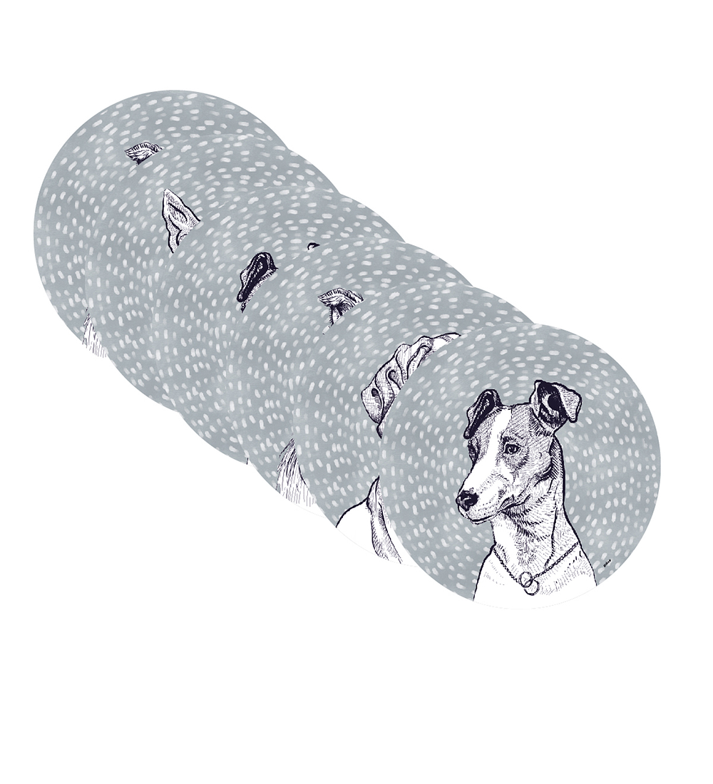 Set 6 Individuales Graba Perros Gris Redondos
