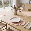 Este conjunto de individuales destaca por su sofisticada silueta orgánica —inspirada en las formas naturales de las piedras de río— y su delicada textura gofrada en relieve sobre un suave tono rosa pastel. Una edición limitada diseñada para quienes buscan romper con la rigidez de las líneas tradicionales, aportando vanguardia y una calidez táctil única a su mesa.Tecnología Novo Tela & Cobre
