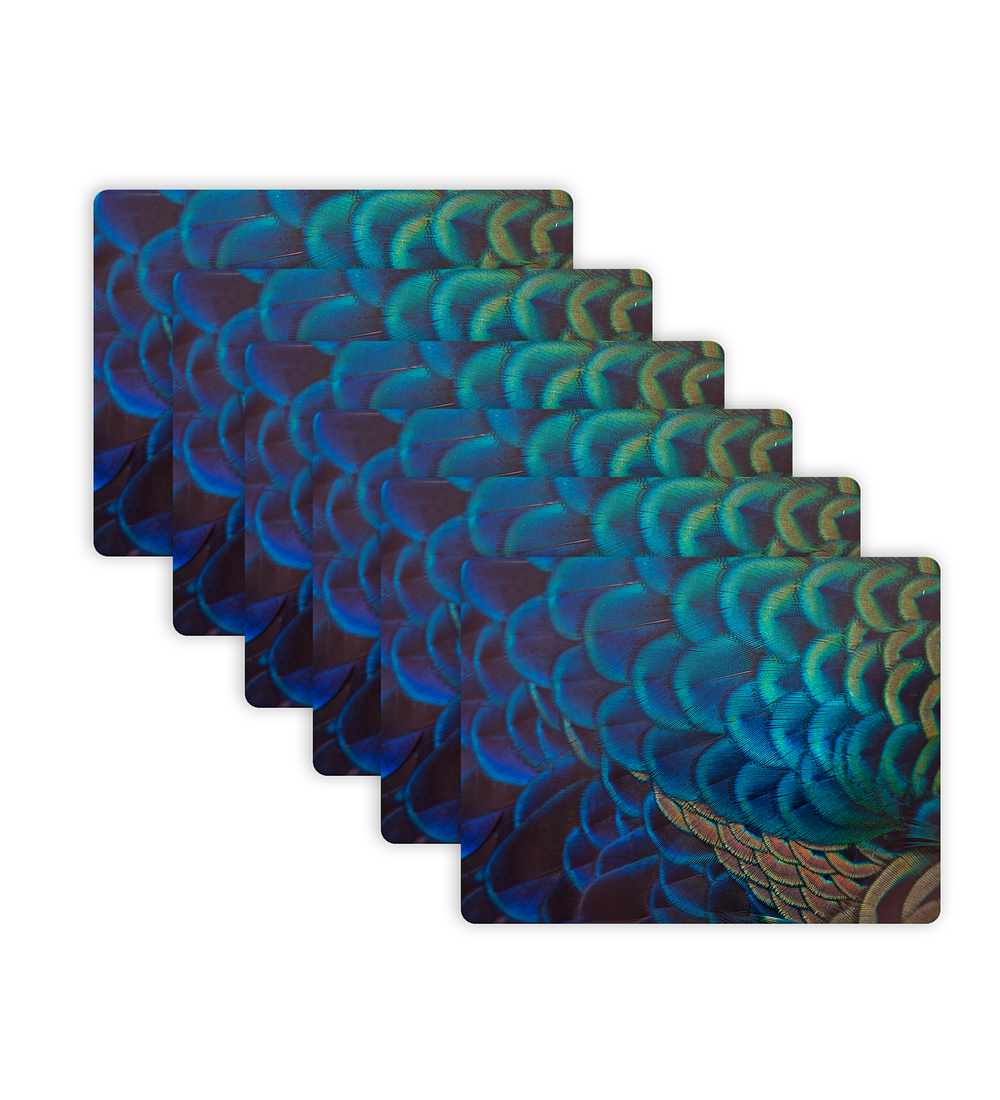 .Set De 6 Individuales Plumas Faisán Azul